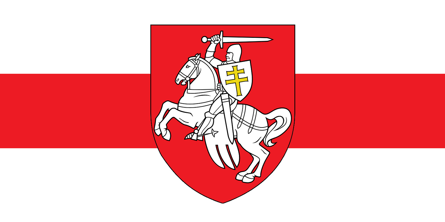 The historical coat of arms of Belarus is a charging knight on a white horse. It is called “Pahonia,” which translates from Belarusian as “The Chase.” You can read the history of the Belarusian coat of arms that dates back to the 13th century in this article: Pahonia, the coat of arms of Belarus.